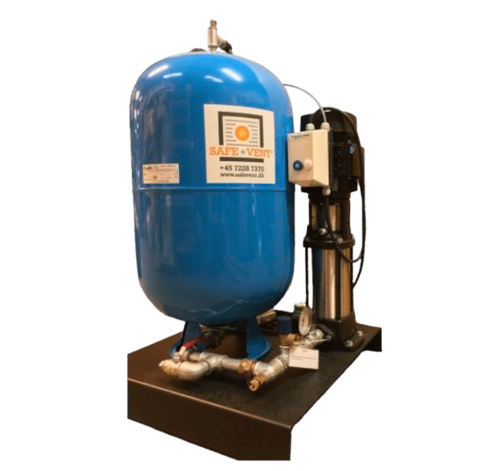 Насосна станція забезпечує необхідний тиск та об’єм води для роботи системи гасіння іскор. Вона гарантує стабільну подачу води до форсунок гасіння у момент спрацювання системи.