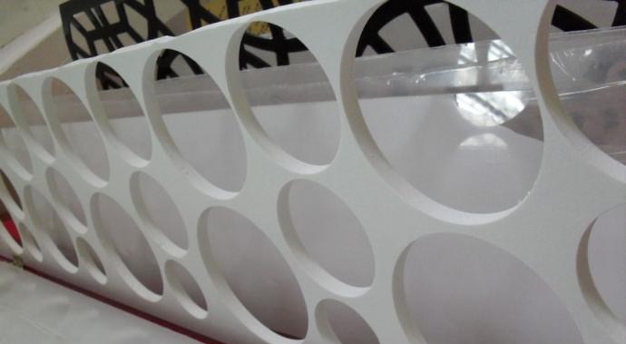 We work with polymer materials (HDPE, POM, PA6), acrylic (PMMA), phenolic laminates, and sheet materials (OSB, MDF, particle board, laminated boards).