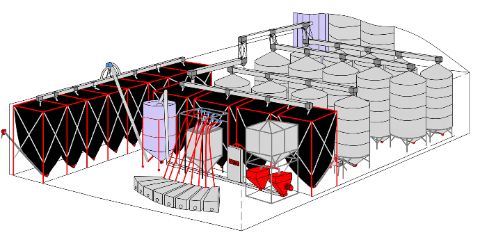 Ці модулі можуть бути інтегровані в існуючий комбікормовий завод або використовуватись як окремі технологічні ділянки: