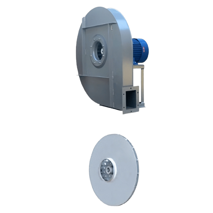 Робочі колеса виготовлені зі сталевого листа з зварною конструкцією та мають лопатки, загнуті вперед (forward-curved blades). Колеса проходять ретельне статичне та динамічне балансування та безпосередньо з’єднані з валом електродвигуна.
