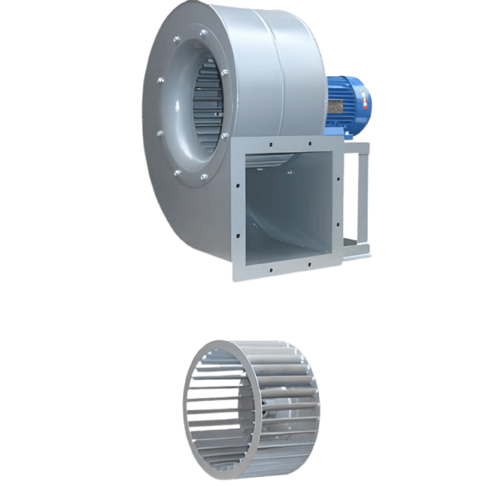 Зварні сталеві робочі колеса мають високоефективні вперед загнуті лопатки. Кожне робоче колесо проходить статичне та динамічне балансування і безпосередньо з’єднане з валом електродвигуна.