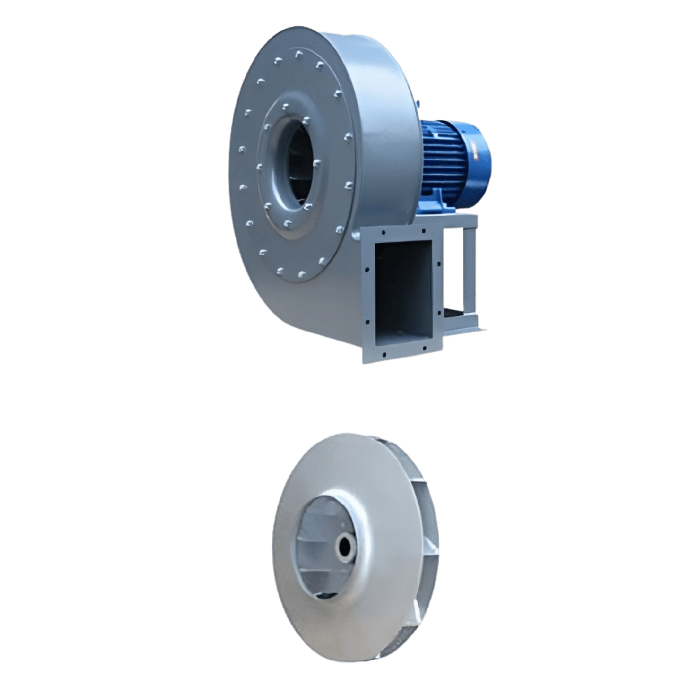 Робочі колеса виготовлені методом точкового зварювання та оснащені високоефективними лопатками, загнутими назад (backward-curved blades). Колеса проходять ретельне статичне та динамічне балансування, що забезпечує стабільну та малошумну роботу вентилятора.