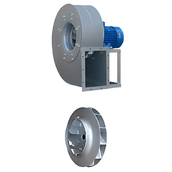 Робочі колеса виготовлені зі сталевого листа та мають високоефективні лопатки, загнуті назад (backward-curved blades). Колеса проходять статичне та динамічне балансування, що забезпечує стабільну та надійну роботу вентилятора.