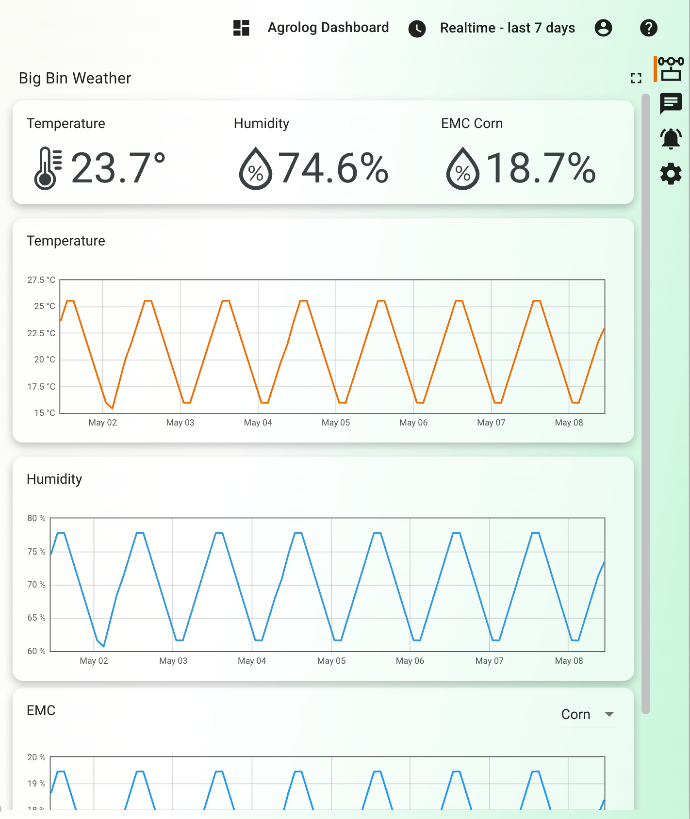 Отримані погодні дані автоматично передаються до системи AgroLog Manager, де використовуються разом із показниками внутрішніх сенсорів. Це дозволяє операторам і технологам прогнозувати зміну умов зберігання, своєчасно коригувати режими аерації та знижувати ризик конденсації, самозігрівання або погіршення якості зерна.