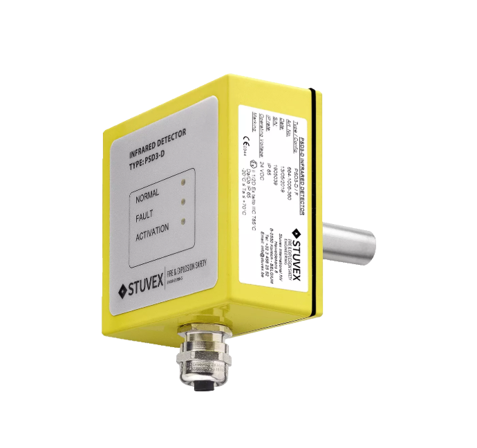 Інфрачервоні детектори PSD3-D ідеально підходять для виявлення джерел тепла, таких як іскри, розжарені частки та полум’я в повітропроводах або транспортних системах.